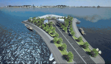 西人工岛面积约13.7万平方米、相当于19个足球场,从空中俯瞰,就像一只鲲鹏,展翅在伶仃洋海面上。这里也是深中通道桥隧转换的关键构造,从这里开始,深中通道开始了全长6845米的海底隧道部分,未来汽车将从这里驶向海平面之下,最深的地方将会在海平面之下39米的沉管隧道中行驶。